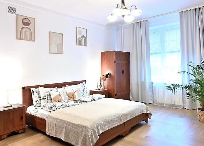 This 75 m^2 apartment lies in the Srodmiescie district, 1.8 km from the royal St John's Cathedral. Within 100 metres of Centrum Nauki Kopernik tube station, the accommodation is also in proximity to The Museum on the Vistula.